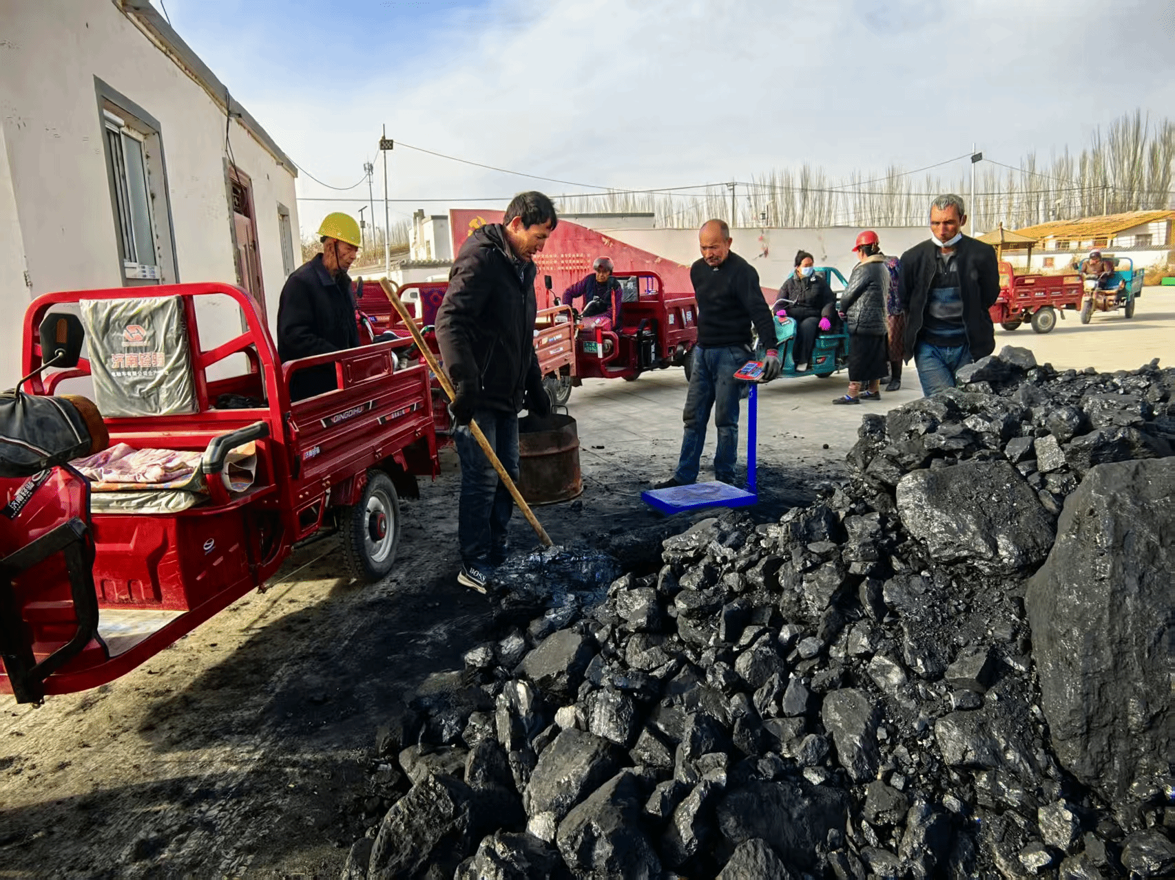 领到煤炭的当勒克蒙加克村村民多来提尼亚孜·阿西木一边帮着邻居装车,一边高兴地说:“这煤送得太及时了!天气说冷就冷,正惦记着取暖的事儿呢。工作队和村上总是想着我们,这煤烧起来,屋里暖和,心里更暖和!”