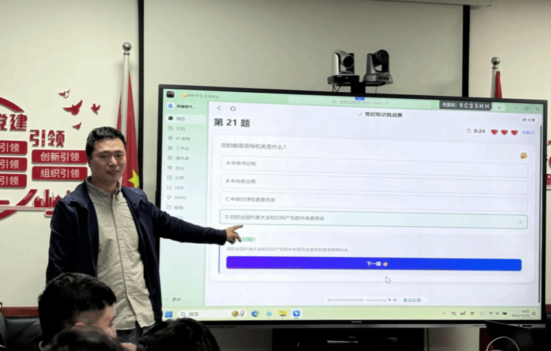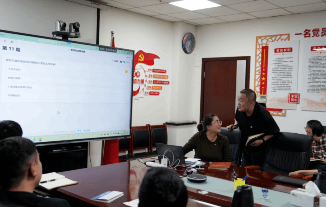知识问答PK环节,随着主持人的“比赛开始”刚落音,抢答声便此起彼伏。大家精神抖擞、反应迅速,有的起身作答干脆利落,有的补充说明条理清晰,你追我赶,积分榜单上的数字实时跳动。这一场 “擂台”,赛的是对党建知识、公文规范的熟练掌握,比的是求真务实、奋勇争先的精气神。