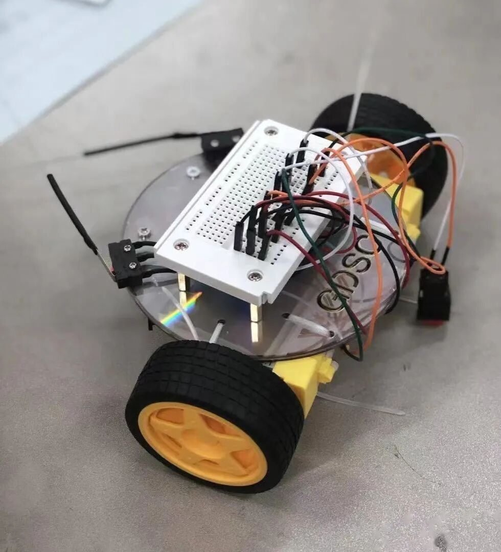这款机器人模拟鼹鼠碰到障碍物时,会发出向左或向右的电信号,机器人会做出相应的向左转或向右转的动作,如果没有障碍物会保持直行。这款机器人充分锻炼了孩子们的动手能力和思维能力。