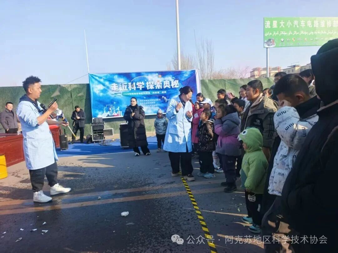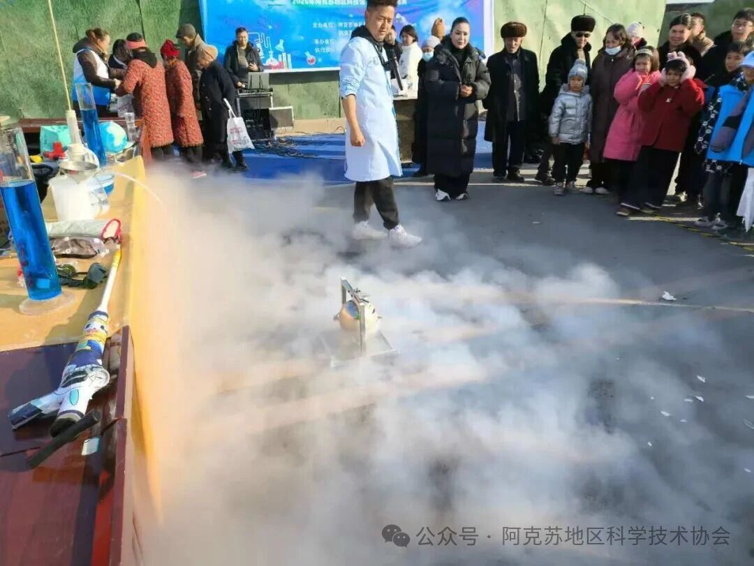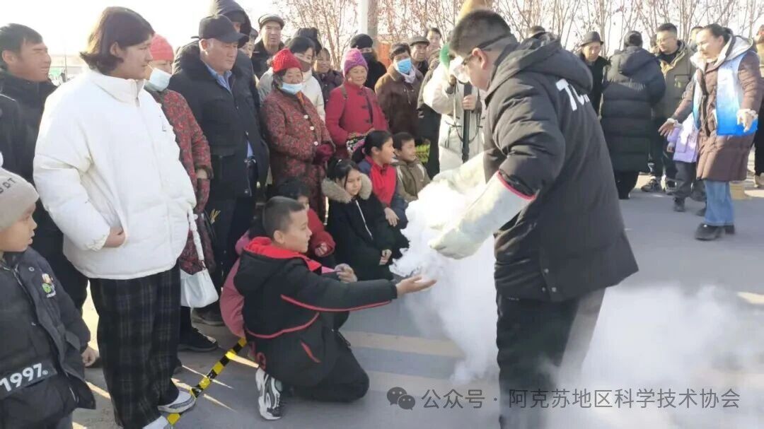为深入推动科普资源下沉,让科学知识贴近群众、惠及民生,1月10日,由阿克苏地区科协、阿克苏地区科技馆主办,温宿县科协承办,“科学口袋”新疆科普团队执行的首场“空气”主题科学秀巡演活动,在阿克苏市、温宿县室外公共场地精彩上演。地县两级科协系统工作人员、机关干部、基层群众及青少年代表齐聚现场,共同解锁空气与物质形态变化的科学奥秘。