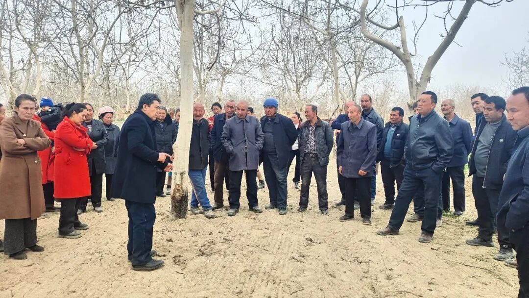 农业专家为村民讲解果树管理技术