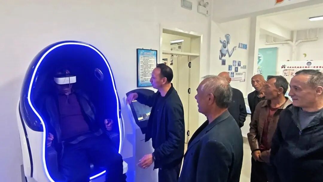 村民在科普馆内体验VR科技设备