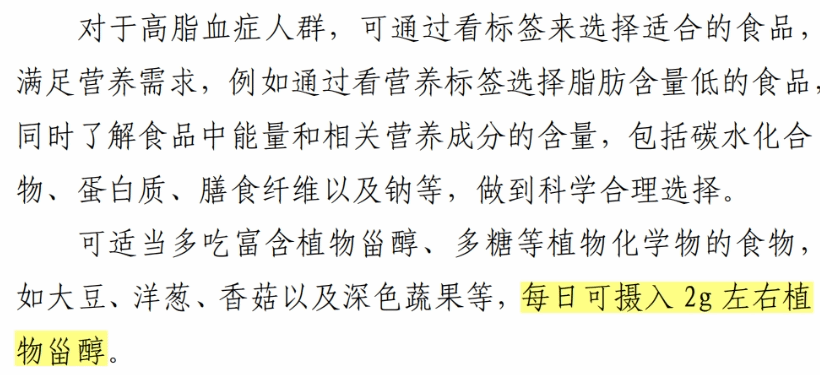 目前我国居民每天植物甾醇摄入量还不够,仍然需要努力,对于有血脂异常问题的人,也可以考虑咨询医生服用植物甾醇补充剂。