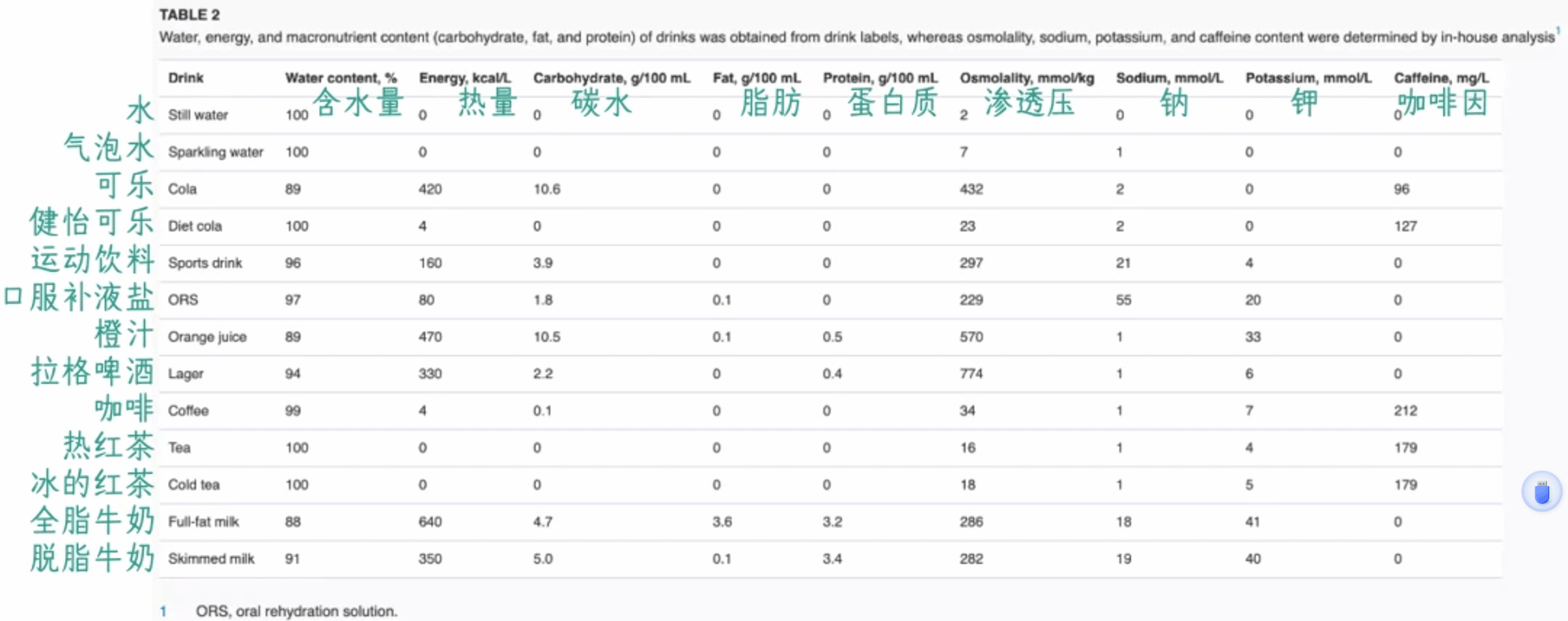 研究人员招募了 86 名受试者,测试了 13 种常见饮料(包括水、气泡水、可乐、健怡可乐、运动饮料、口服补液盐、橙汁、拉格啤酒、热红茶、冰镇红茶、咖啡、全脂牛奶和脱脂牛奶)对人体的补水效果。