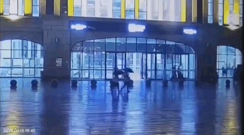 6月13日晚,辽宁省锦州市锦州北站火车站广场有人遭到雷击,通过监控视频可以看到,两人打着两把雨伞行走在广场上,手中拿着行李,一道强光之后,雷电击中雨伞,两人瞬间倒地。