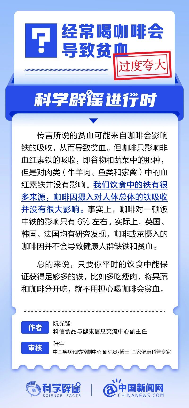 经常喝咖啡会导致贫血? 发布日期:2024-05-24 信息来源:科学辟谣 阅读量: 上一条:太阳变成黑洞,地球会被吸进去吗? 下一条:这种水果吃 3 粒就够一天维生素 C 了!教你 5 种吃法,又省钱又好吃!