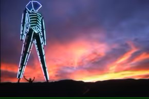在内华达州举行的第十二届年度火人节上,40英尺高的火人雕塑被EL线包裹着。