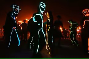 在2008年的火人节中,Suenos Del Agave的表演者穿着EL金属丝服装跳舞