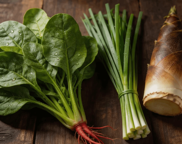 3. 菠菜、韭菜、春笋