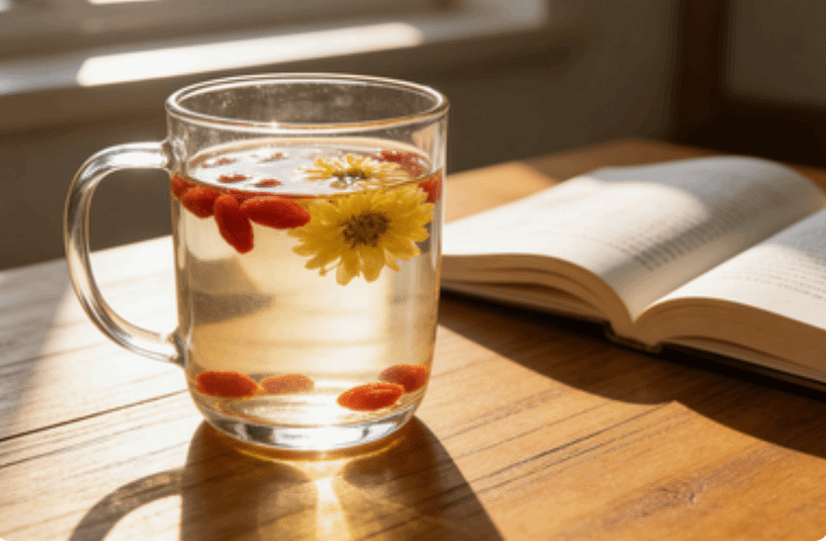 多喝温水,可泡枸杞、菊花,润燥护肝