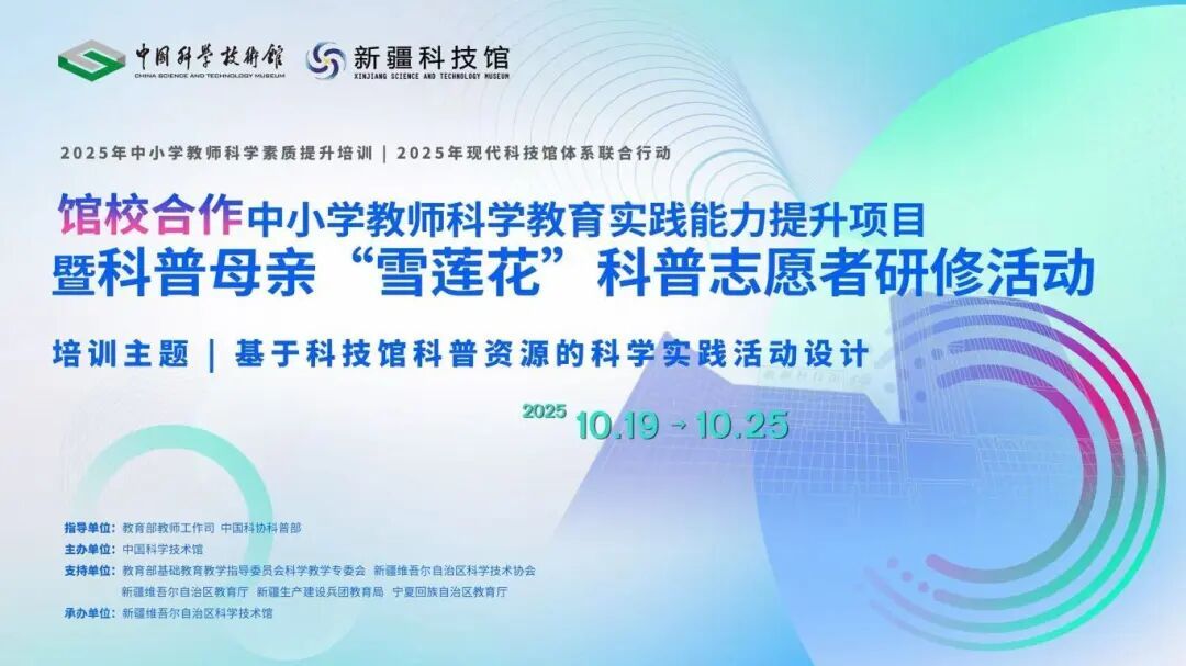 本次活动由中国科技馆主办、新疆科技馆承办,在教育部教师工作司、中国科学技术协会科普部的指导与支持下开展。活动以 “基于科技馆科普资源的科学实践活动设计” 为核心主题,精准聚焦一线科学教师及科普志愿者在资源利用、活动创新方面的核心需求,创新采用 “理论授课+课程开发工作坊+案例分享+外出见学” 四位一体的多元模式,旨在系统提升参训教师运用科技馆科普资源开展科学教育的实践能力,助力科学教育工作者深入理解校外科学实践资源的价值,拓宽活动设计思路,推动科普研学实践与中小学新课程标准有机衔接,最终构建 “馆校一体、资源共享、活动共育” 的科学教育新生态。
