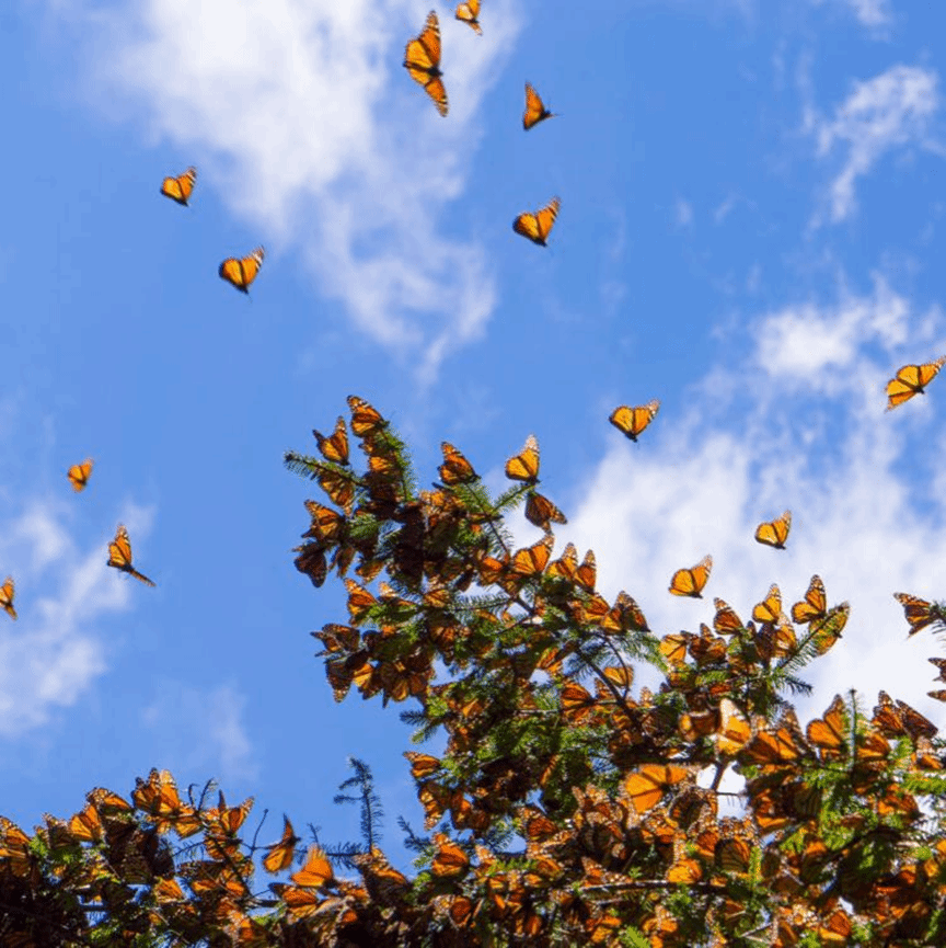 图为在墨西哥米却肯州的一根树枝上栖息的帝王蝶。帝王蝶每年都要迁徙极远的距离。