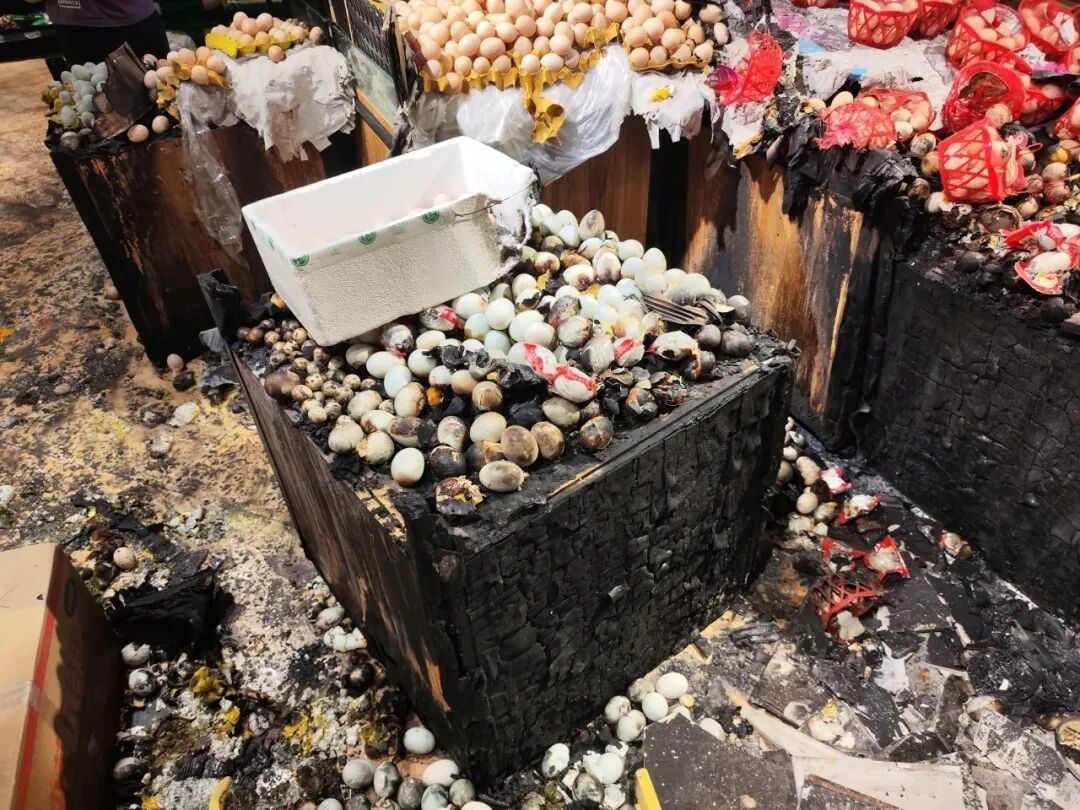 7月,浙江金华,一生活超市发生火灾。该起火灾造成超市内近百个鸡蛋和鸭蛋,以及面粉等商品烧损。