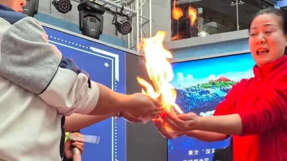 手掌上的“火焰秀”科学实验,听起来就像是能从手掌里放出火焰一样,但这其实并不是真的。不过,科技辅导员的“魔法”,在小朋友的眼里,真的就像是能变出火焰一样。勇敢的幼儿园老师也想体验一番,她在手上沾上肥皂水,挥动手掌时,也像有了“魔法”,小朋友们欢呼起来。未来之星第五幼儿园教学园长邓荣欢说:“我们安排两天的时间,让园里的中班和大班小朋友全部来一遍,这个月也是我们幼儿园的科学活动观摩月,旨在培养孩子们科技意识,激发孩子们对科学知识的兴趣。”