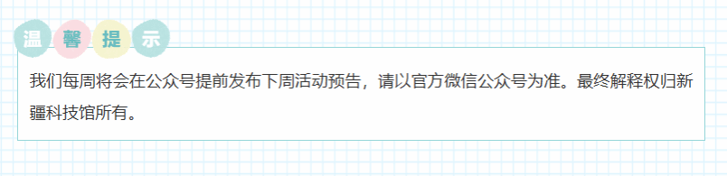 炎炎夏日,新疆科技馆为广大青少年准备了一系列丰富的公益性科普活动和开放性科学教育活动,快和小科一起去看看吧!