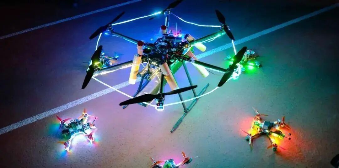 专业无人机表演人员在院内指定空域进行无人机表演。