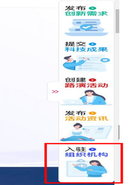 5.点击左侧导航栏“组织机构”,进入新页面后从右侧滚动侧边栏点击入驻组织机构按钮。