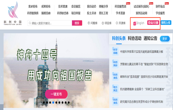 1.输入网址www.kczg.org.cn,或搜索“科创中国科技经济融通平台”进入平台首页。