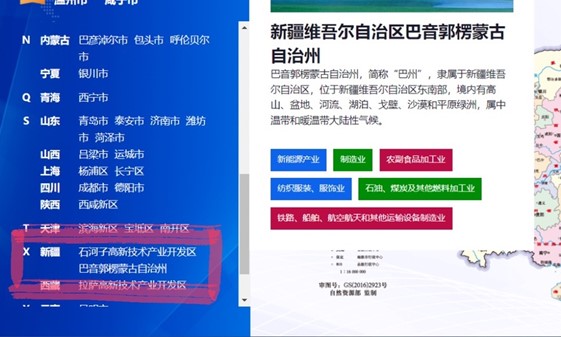 4.登录之后从主页上方试点城市(园区)进入新疆维吾尔自治区 巴音郭楞蒙古自治州。