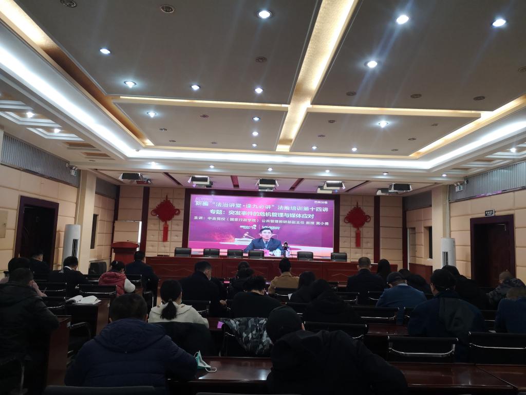 中央党校(国家行政学院)公共管理教研部副主任、教授黄小勇通过远程视频授课,围绕《突发事件的危机管理与媒体应对》主题,从科学研判,果断决策;有效组织,统一指挥,协同应对;走好群众路线,提升(网络)舆论引导能力三个方面传授了突发事件的危机管理与媒体应对方法。