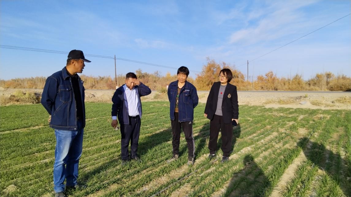 在华大基因牧草示范点详细了解了正在试种的沙漠盐碱地治理情况,试种的80亩狼尾草覆盖了原先的沙漠盐碱地,为治理沙漠盐碱地和防风治理提供了成功案例。在且末县乌拉格镇,农业发展有限公司详细了解了土地盐碱地治理方面的情况,1万亩的荒地、戈壁被改造成整齐的块状条田,绿油油的冬小麦郁郁葱葱。