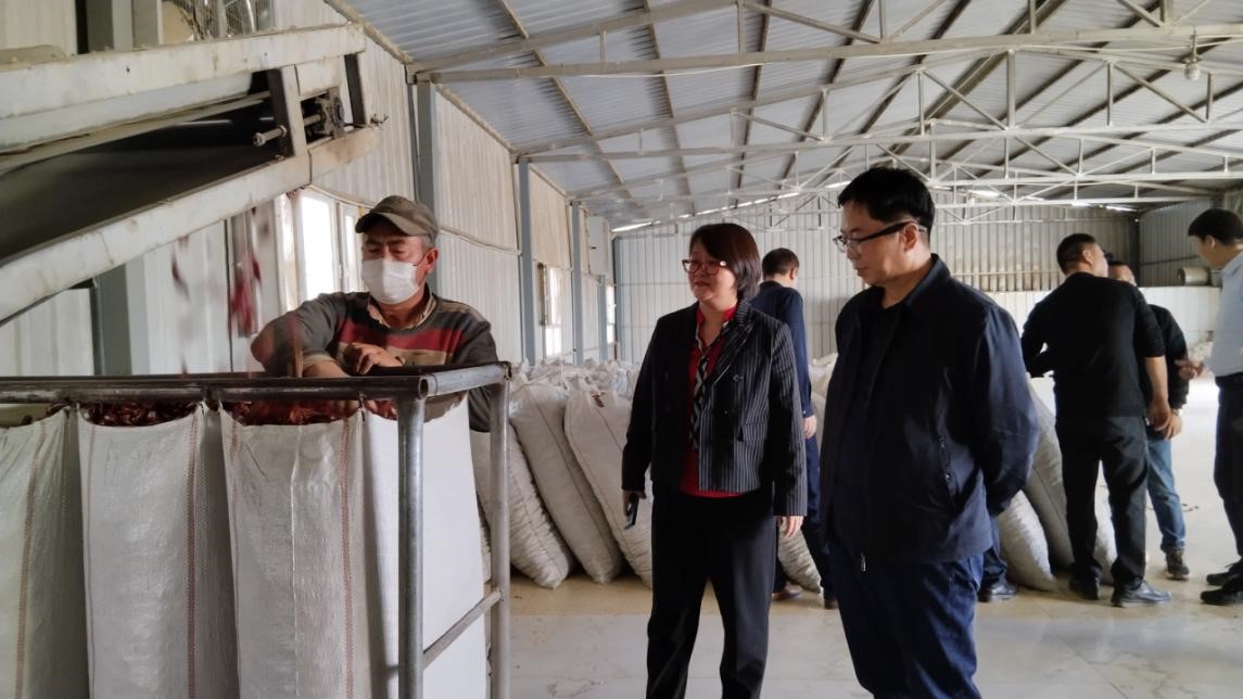 调研组一行在和静县工业园辣椒晾晒场、和静县浩园辣椒加工厂对辣椒生产及加工情况进行了调研。和静县独特的气候条件,使得种植的辣椒品质优良,深受疆内外客商青睐,已成为全疆加工辣椒的主要生产基地之一。2023年,和静县全县种植辣椒18万亩,辣椒获得大丰收,平均亩产508公斤,最高单产达1050公斤。