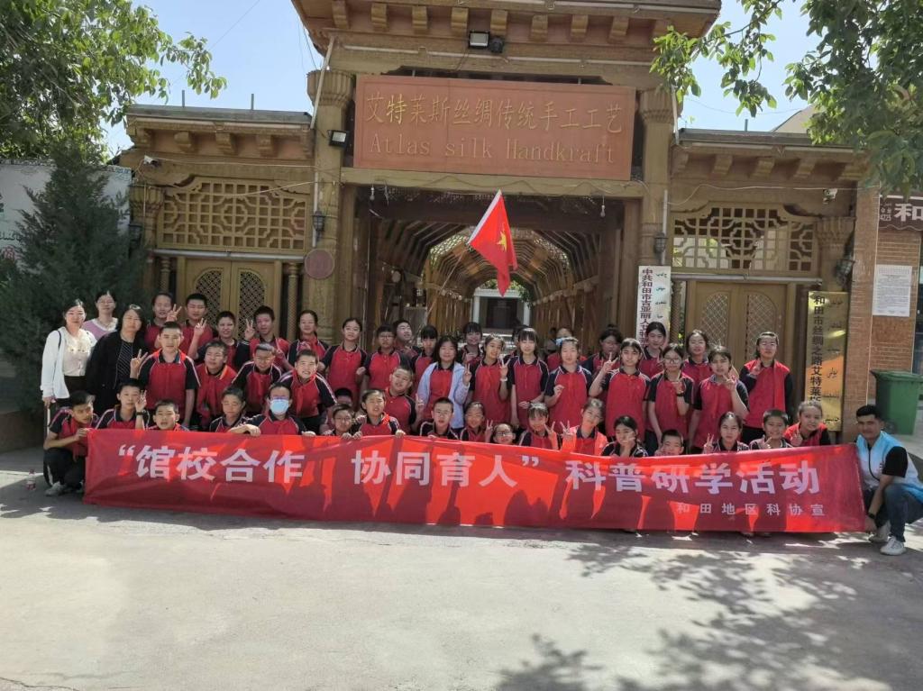 5月24日,和田地区科协带领和田市第一小学的50名学生们分别前往和田科普教育基地——和田蚕桑科学研究所、和田市吉亚乡艾德莱斯绸手工坊,开展了一场别开生面的桑蚕、艾德莱斯研学活动。