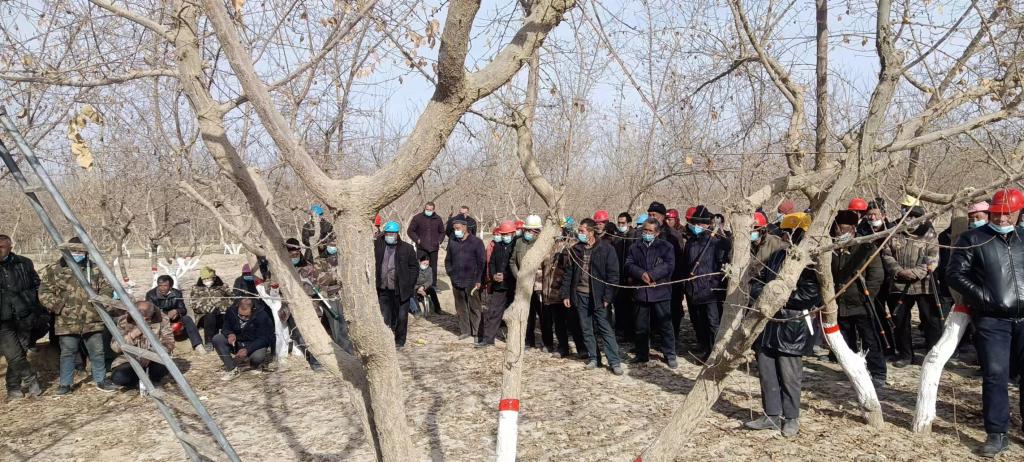 培训以林业技术站人员现场讲解指导,实地查看,各乡镇农民现场观摩的形式开展。此次培训对杏子树春季管理,修剪,拉枝,疏密,水肥管理,病虫害防治,各类果树示范园管理等各项农业生产工作开展情况进行现场观摩学习。