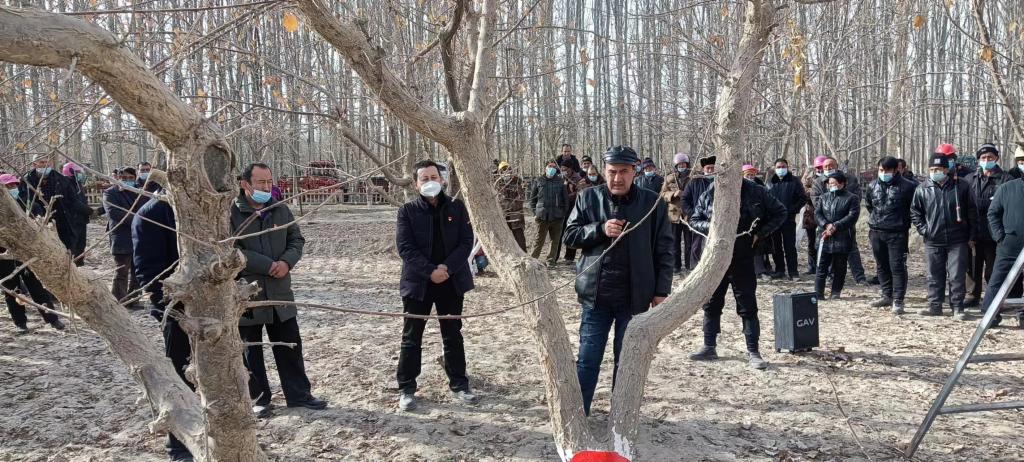 近日,和田地区科协同地区林业和草原推广中心开展”科技之冬”活动,联合在策勒县开展林果业提质增效现场培训会。各乡镇林业技术站人员及农民450名人员参加培训。
