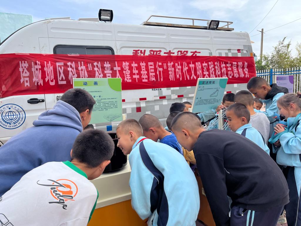 活动现场,塔城地区科协科普大篷车向阿勒腾也木勒牧业寄宿制中心校、吉也克镇牧业寄宿制中心小学全体师生展示了科普展品、科普展板等,活动中,学生欢呼声此起彼伏,争抢体验感受,快乐满满。