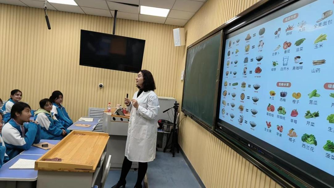 2023年11月24日,和田地区科协联合新疆维吾尔医学专科学校科协在和田地区第一中学开展“健康科普进学校”活动。该高校科协检验康复系教师,公共卫生主治医师木海热姆·杰力力以“青少年健康与营养”为主题,结合“中国居民膳食指南2022”“中国居民膳食宝塔”等,讲解日常饮食对青少年时期的营养需求及其对健康的影响。讲座以现场讲授结合录播的方式开展,全校1516名学生参与,结束后开展学生健康相关问题答疑活动,提出合理膳食建议。