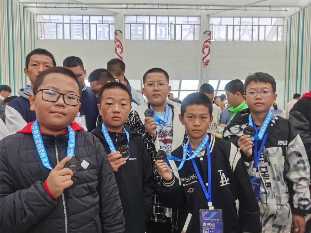 “幻影F1”电动直线车三项全能团体竞赛(中学组):杨睿山、李一诺、石祥凯一组获得一等奖(银牌);“开拓者”太阳能汽车直线竞速赛(小学男子组)周郅皓获得一等奖(银牌);“小马号”橡筋动力小车直线定点赛(小学男子组)郭浚辰获一等奖(银牌)。