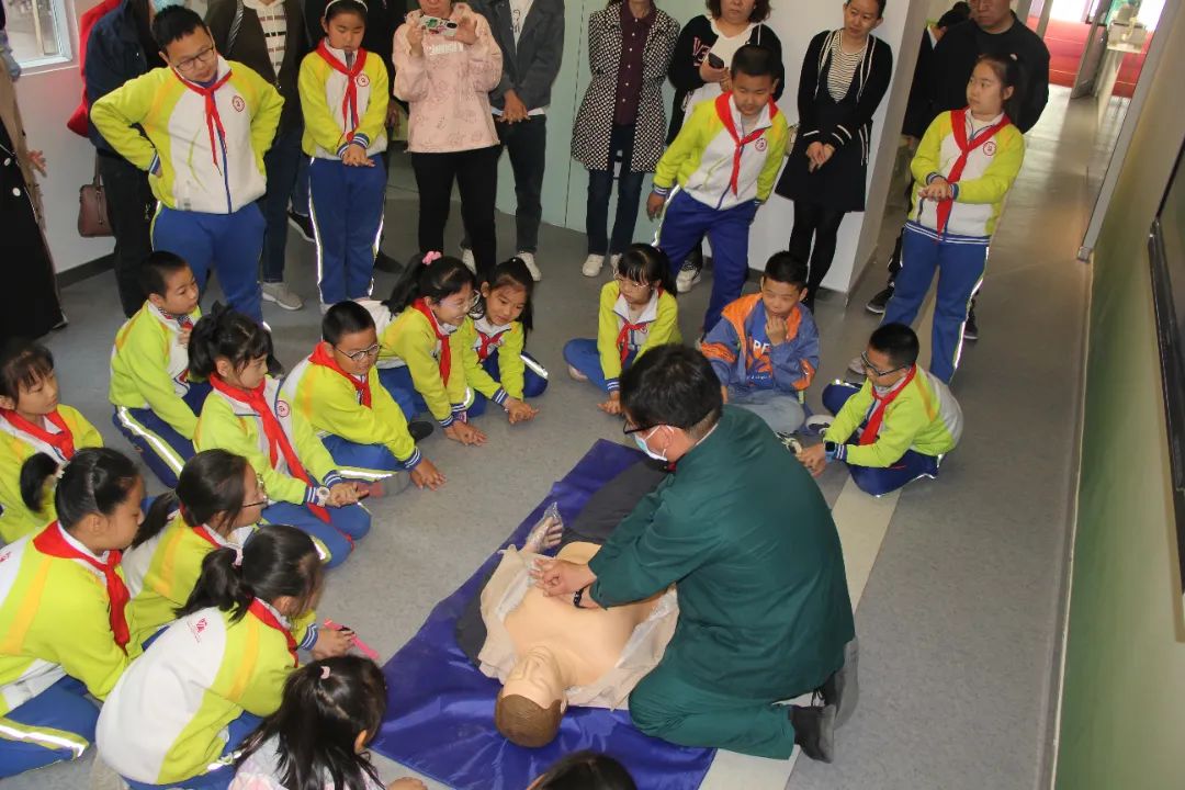 最后,由急诊医学科主治医生张虎明进行了心肺复苏小科普,围绕心肺复苏概念、心肺复苏基本知识,急救要点和步骤、操作过程中的注意事项等内容进行了讲解,同时,采用了人体模型设备,进行模拟示范操作。讲解结束后,同学及家长们纷纷在心肺复苏硅胶人体模型上进行了模拟练习,医护人员现场手把手指导,让参加培训的同学及家长们亲身体验了心肺复苏的急救流程,掌握了心肺复苏急救方法。