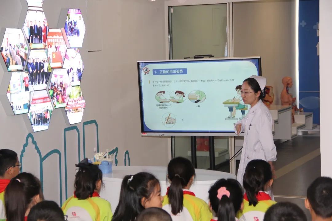 眼科护理师徐璐就预防近视的相关内容进行讲解,让学生认识到保护眼睛的重要性,日常生活中要养成良好习惯,这样才能有效预防近视,并且提醒家长和老师,要正确地引导孩子合理使用眼睛,保护好眼睛。
