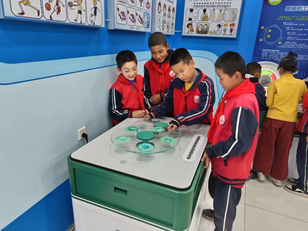 在直播活动中,我们邀请了和硕县第三小学五年级学生热孜耶担任小小讲解员,为我们进行科普讲解。和硕县第三小学组织了15名学生参加并一起参观体验了展品,热孜耶同学给我们介绍了“认识遗传病”和“变调的声音”两个展品,并认真讲解了其中的科学原理和具体操作手法,邀请同学们实际动手操作,大家都表示已经学会操作手法并深刻体验到了科技的魅力。