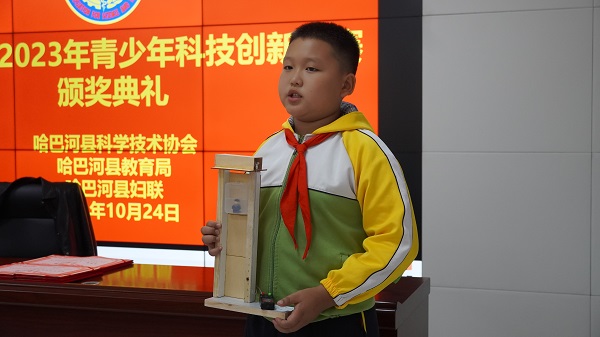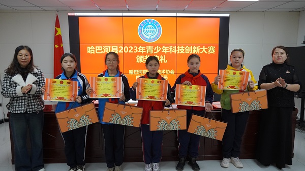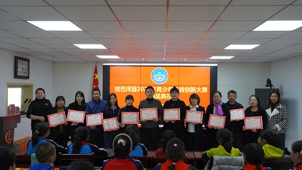 活动现场,哈巴河县科协负责人向获奖学生和老师发放荣誉证书及奖品,获奖学生代表和老师代表发表获奖感言。
