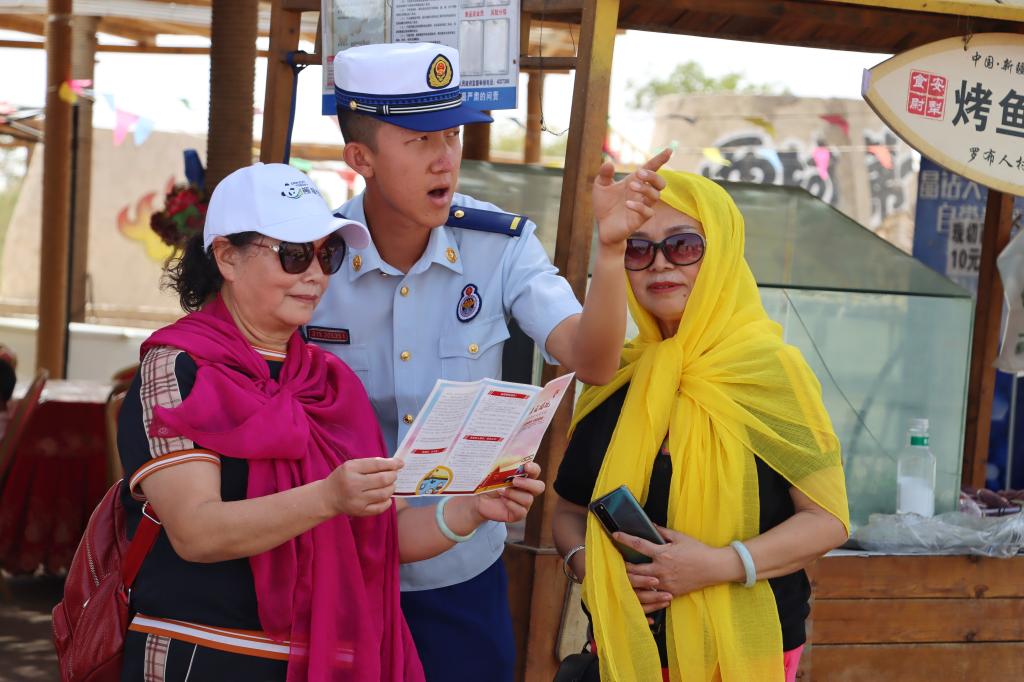 眼下正值塔里木河汛期,地处于塔里木河中下游的尉犁县罗布人村寨也迎来了旅游的高峰期,为预防景区游客溺水事故发生。近日,尉犁县消防救援大队联合县科协、罗布人村寨景区管委会开展防溺水巡查巡护和宣传活动,筑牢景区防溺水安全防线。