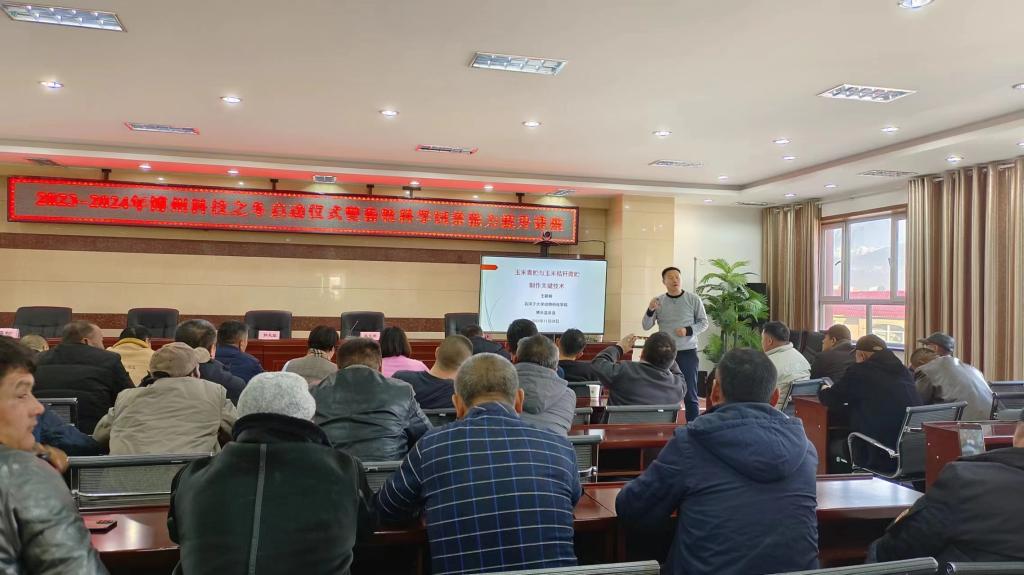 启动仪式后,王新峰教授、蒋松博士分别围绕“秸秆微贮制作及使用技术”“牛羊饲养的疫病防治”两大主题开展畜牧科学饲养能力提升讲座。2位教授深入浅出,结合农业生产实际的干货满满的讲座,博得了听众的阵阵掌声。随后,高惠分享了公司企业产品。