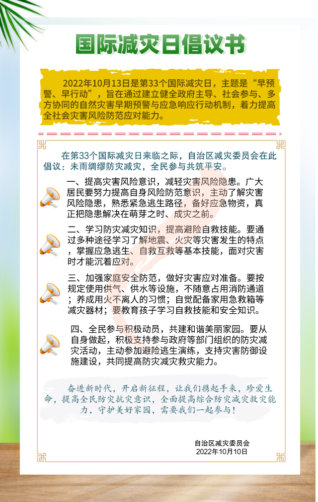 今年10月13日是第33个“国际减灾日”,为加大减灾宣传,提高灾害风险治理能力,10月11-12日,裕民县科协组织全民科学素质行动计划成员单位开展以“早预警 早行动”为主题的线上防震减灾科普知识宣传活动。
