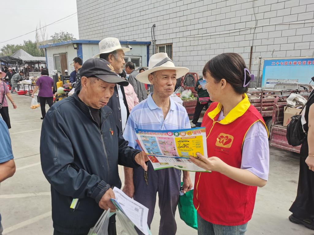 集市上,科技志愿者现场为居民们讲解食品安全方面的常识,并发放《食品安全知识手册》、食品安全海报等宣传资料,引导大家养成正确饮食习惯,筑牢食品安全防线。还向过往群众普及“瓜果蔬菜生吃时要洗净消毒,肉类一定要煮熟食用”“如遇食品安全问题,可拨打12315进行投诉”等食品安全知识,引导大家科学、健康、安全饮食。活动现场,科技志愿者还结合现实案例,向集市上的摊主讲述了食品安全的重要性,叮嘱他们要遵守食品安全相关规定,合法经营,共同守护“舌尖上的安全”。