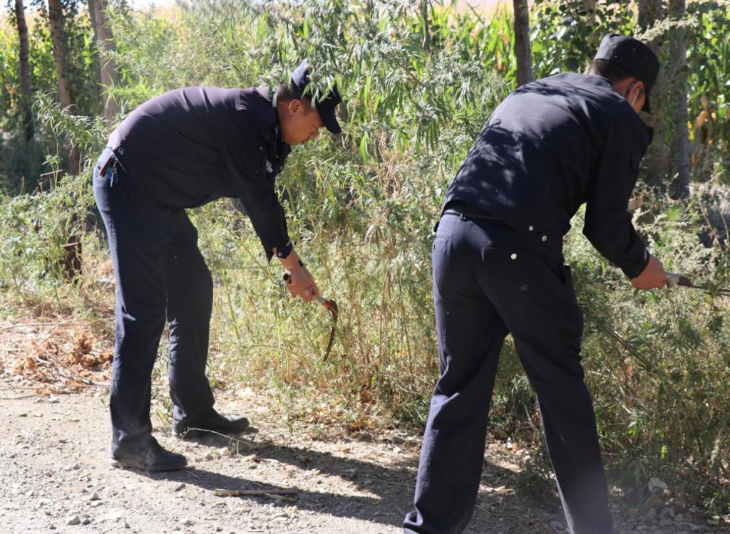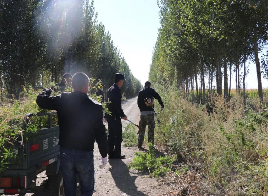 在工作中,辖区群众反映,在森林公园林场附近,有大量野生大麻生长。民警及科技志愿者立即前往进行核查,经核查发现,在森林公园林场附近的大麻是野生生长,并非人工种植。为防止有不法分子将其流入社会而造成危害,民警及科技志愿者对其进行了及时铲除,此次共铲除大麻原植物2000余株。