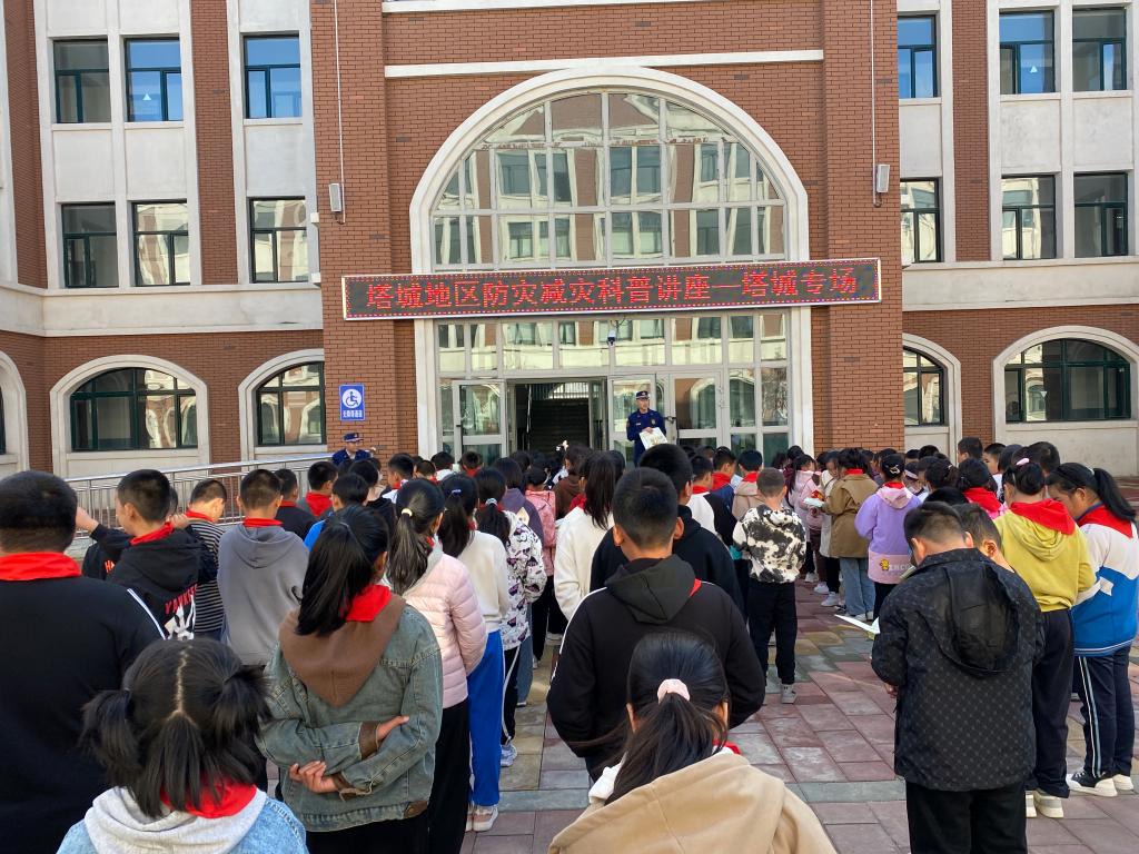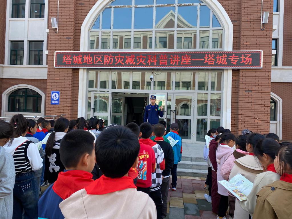 为了进一步宣传普及防灾减灾、自救自护知识,增强广大师生的灾害风险防范意识,2023年10月16日下午,塔城地、市科协联合塔城地区消防救援大队来到了塔城市第四小学,开展主题为“共同打造有韧性的未来”国际减灾日“安全进校园”科普教育活动。
