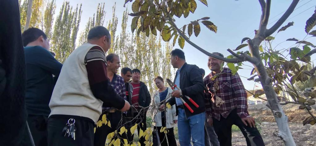 在库车市齐满镇齐满一村,新疆林科院经济林研究所副研究员、新疆园艺学会理事木合塔尔·扎热现场对核桃和杏树的栽培同群众一起交流,传授林果栽培管理技术,群众阿布都热合曼·塔西说,我每年都在种植核桃,但有时候遇到的问题也让我经常不知所措,但是今天能够在现场向专家学习林果业的栽培和管理技术,让我非常激动,今天我也提了很多问题,专家都给我详细讲解了。我今后会积极参与到实践栽培和养殖的行动中来,不断提高栽培和养殖的本领,坚持致富奔小康。
