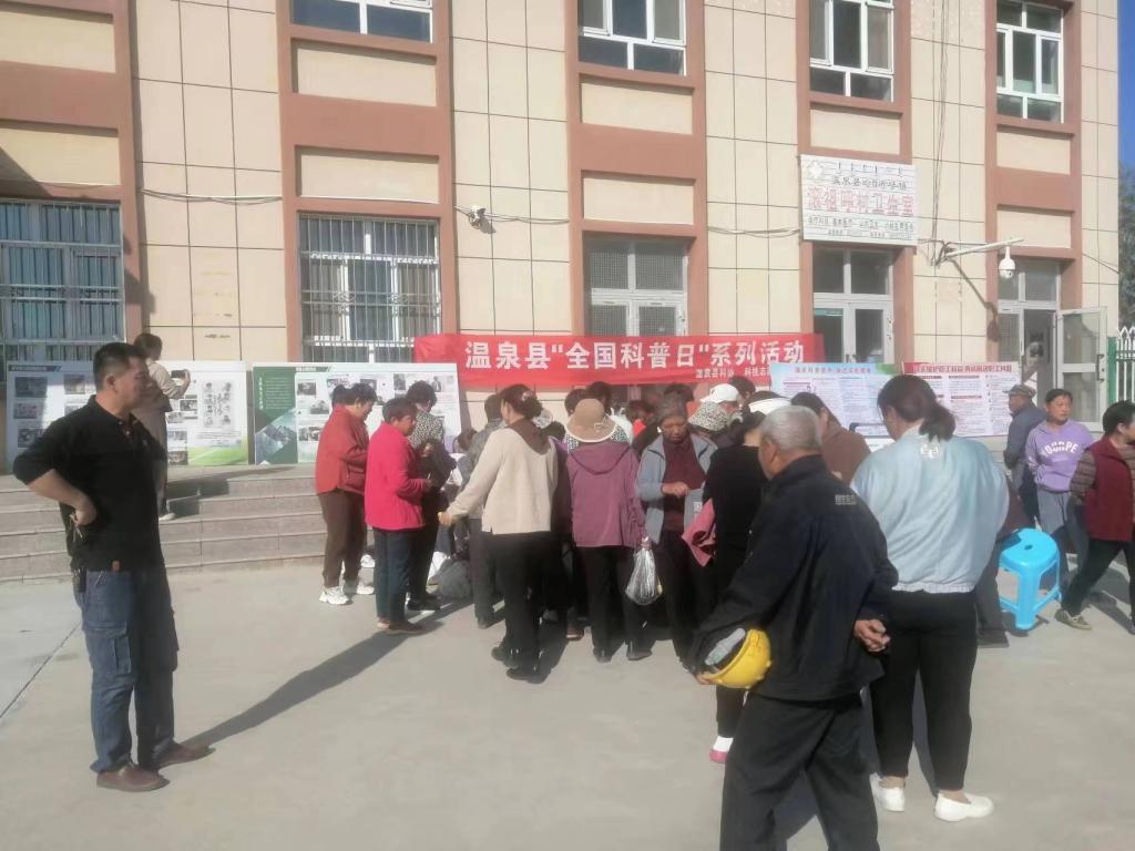 全国科普日活动将活动引向高潮。活动期间,工作人员给前来参加活动的滚祖呼村村民及小学生发放印有科普中国、科普新疆、温泉科普二维码的科普宣传品及种养殖技术、反邪教科普折页、防震减灾科普资料500余份,受益群众达到110余人。温泉县科协还展出科学家精神、种植技术、反邪教警示教育展板18块。