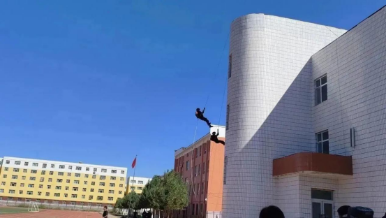 活动伊始,特警们以实战模拟对抗中的高空攀爬、索降、防暴棍的使用等,向学生们逐一展示了特战技能。