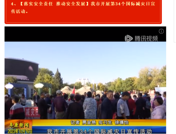 今年10月13日是第34个国际减灾日,主题是“共同打造有韧性的未来”,强调构建政府主导、社会参与、多方协同的灾害风险治理模式,保护好灾害脆弱群体,加强防灾减灾中的韧性建设。按照区、州减灾工作要求,阜康市减灾委、应急管理局牵头组织阜康市科协等各成员单位,在阜康市畅岁园集中开展第34个国际减灾日宣传活动,并在各乡镇和新疆天池管理委员会设立分会场。