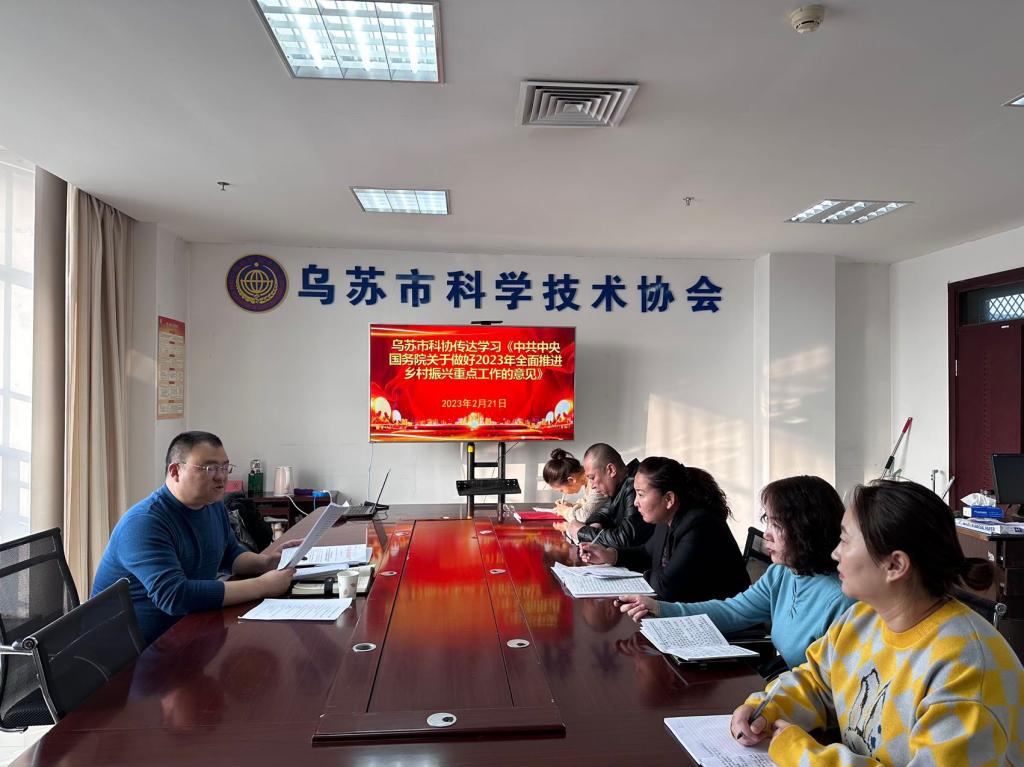 2023年中央一号文件发布,释放了重农强农的强烈信号,在抓好粮食安全、加强农业基础设施建设、强化农业科技和装备支撑等关键领域,开辟了新思路,为守底线、促振兴、强保障,为全面推进乡村振兴指明了方向。2月21日,乌苏市科协组织全体干部认真学习领会中央一号文件精神,为乡村振兴积蓄后劲。