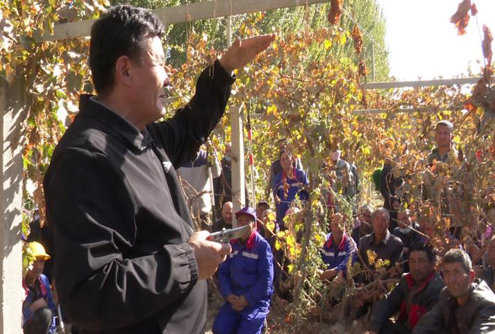 座谈会结束后,开展科技服务和进行技术指导。顾问组专家们分别深入到洛浦县布亚乡塔木其拉村、洛浦镇巴什恰帕勒村开展葡萄树林果管理培训、温室大棚蔬菜病虫害防治技术培训。在培训过程中,专家们用通俗易懂的语言,深入浅出地详细讲解林果和温室大棚蔬菜的种植管理技术要点,在讲解中不时与群众互动,认真耐心地回答群众提出的各种疑问和政策技术咨询,受到群众的一致好评。