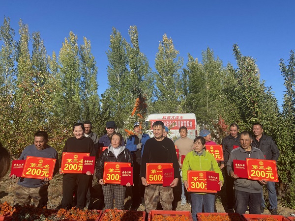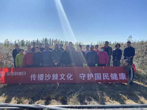 其次,在新疆康元生物技术集团股份有限公司自有沙棘种植示范基地组织开展沙棘采摘比赛。企业职工、科协工作人员、当地农牧民等50余人参加活动。