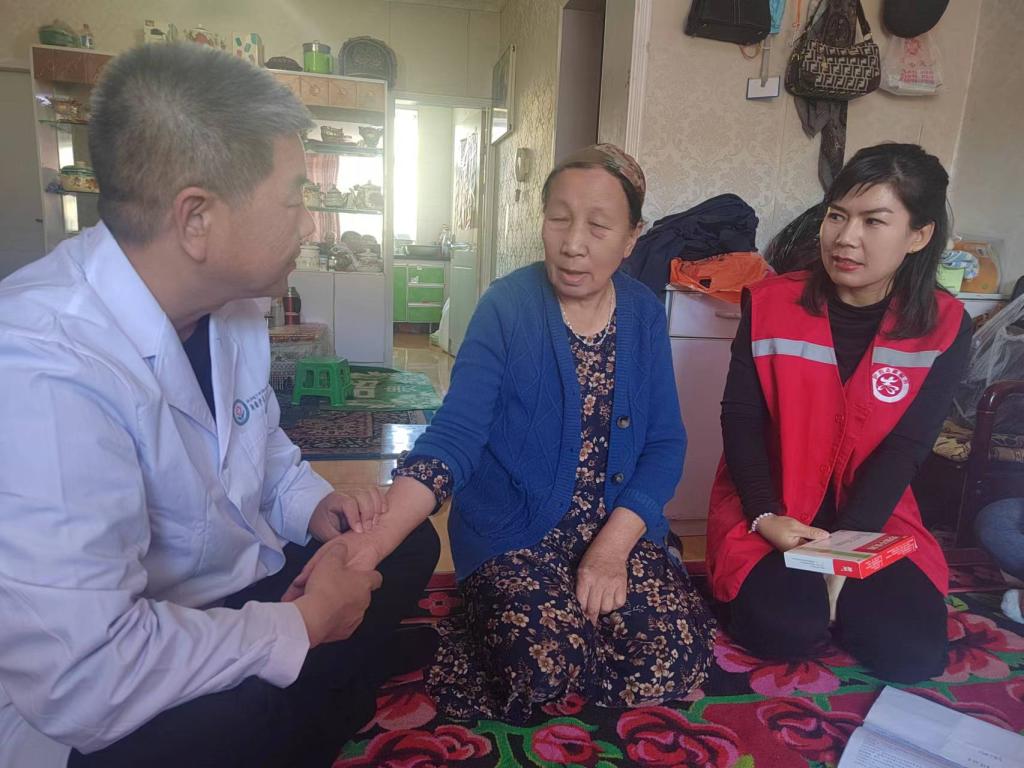 在伊吾镇秀水苑社区,义诊专家开展慢性病防控健康教育知识讲座,普及预防慢性病的健康知识。讲座结束后,义诊志愿者们耐心细致地为他们进行检查,认真询问他们的病史、生活习惯,并针对体检结果反映出的具体健康问题进行个性化的生活方式指导。在吐葫芦乡伊河苑社区,义诊志愿者对于年龄大或行动不便的老人开展精准入户送医、送药,传递温暖,打通服务群众的最后一米,让老人们切实感受到党的政府的温暖和关爱。